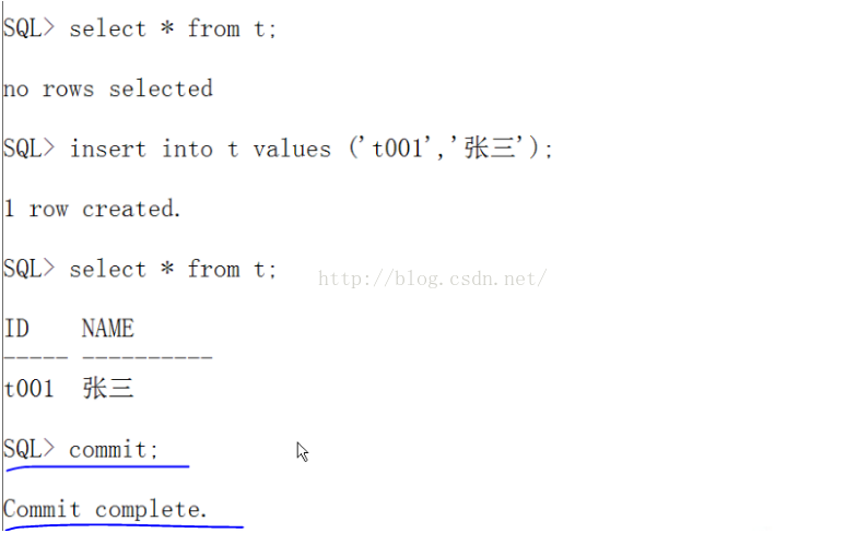 在原sys登录的cmd窗体内继续写commit命令,例如以下图: