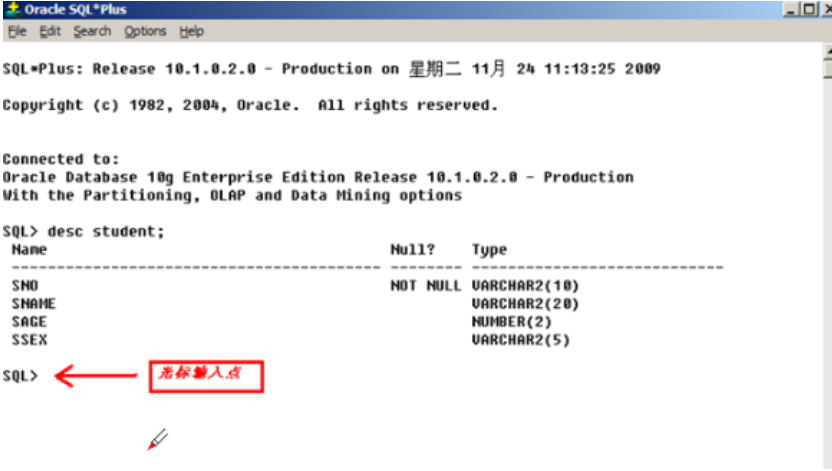 3.假设出现以下界面,就是SQL*PLUS环境。例如以下图: