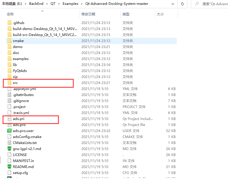 4. 复制:Qt-Advanced-Docking-System src文件夹和ads.pri 文件