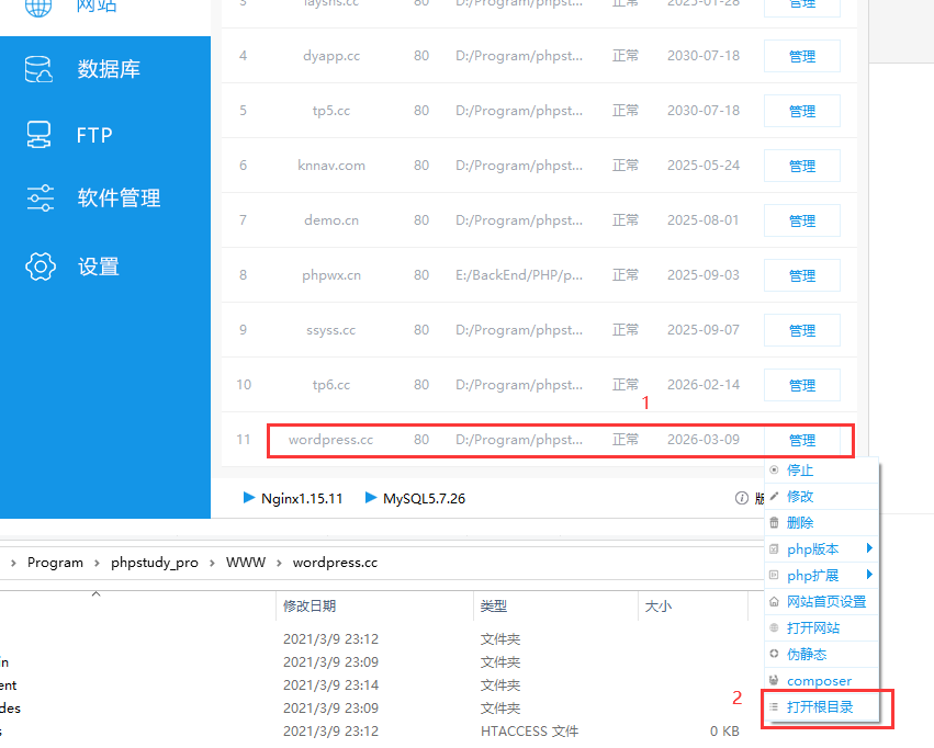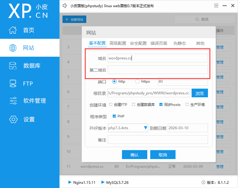 2. 在 phpstudy 中,新建网站