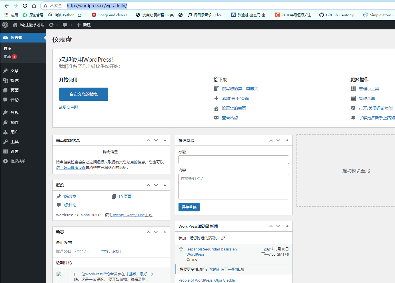 我搭建wordpress本地环境采用的集成开发套件: phpstudy_pro,后面做开发采用的是 vscode,源码采用 git wordpress官方的最新版(20210310)
