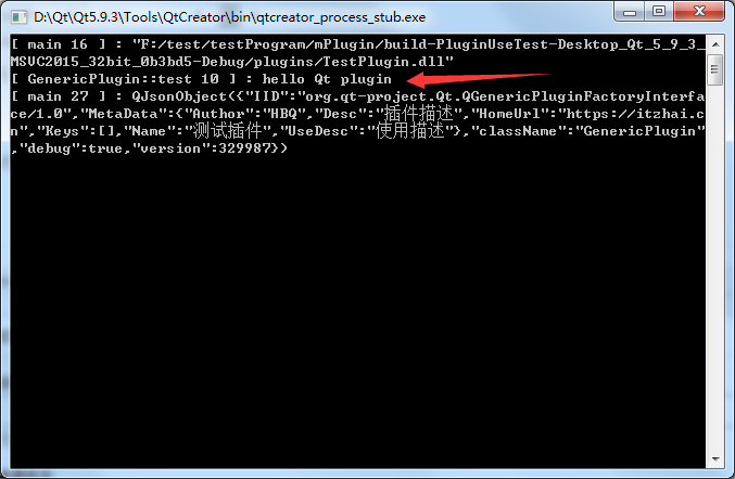 qDebug() << "[" << __FUNCTION__ <<__LINE__ << "] :" << "hello Qt plugin";
