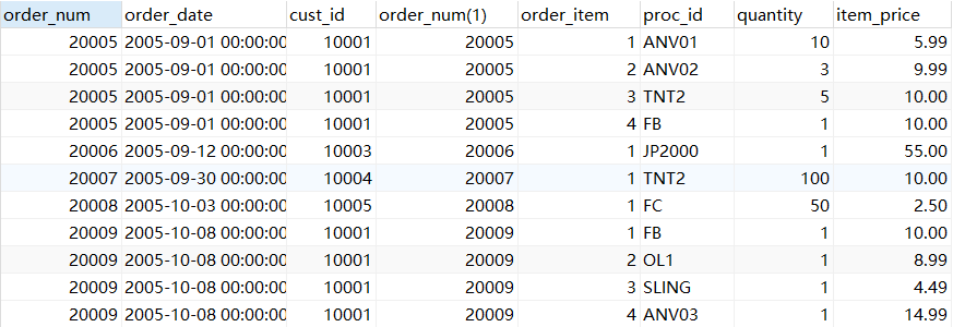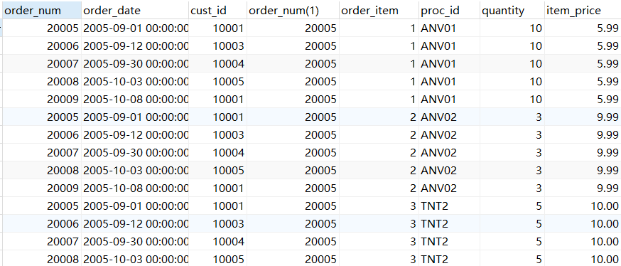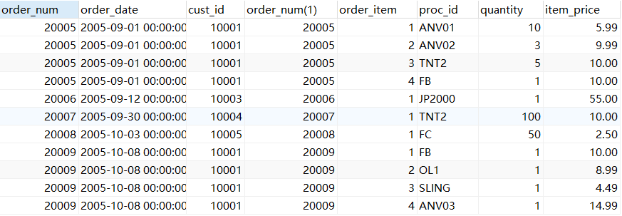 select * from orders INNER JOIN orderitems ON orders.order_num = orderitems.order_num;