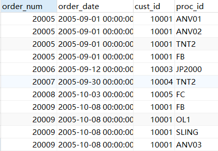select orders.*,orderitems.proc_id from orders INNER JOIN orderitems ON orders.order_num = orderitems.order_num;