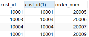 SELECT customers.cust_id,orders.cust_id,orders.order_num from customers INNER JOIN orders ON customers.cust_id = orders.cust_id;