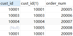 SELECT customers.cust_id,orders.cust_id,orders.order_num from customers RIGHT OUTER JOIN orders ON customers.cust_id = orders.cust_id;