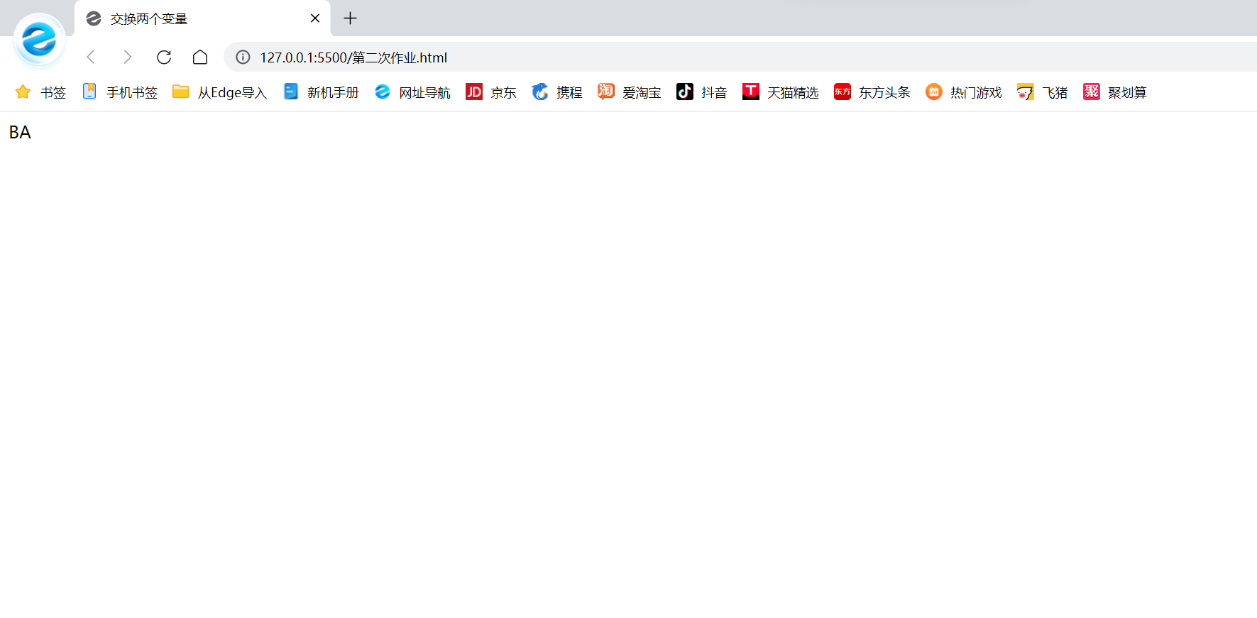 | 这个作业的目标 | 第二次作业-交换两个变量的值 |
