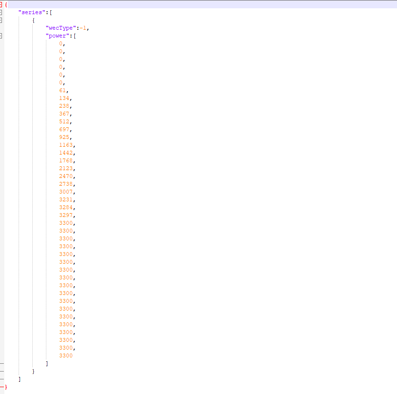 fastjson格式化默认会将集合输出为竖条的,比如下面的power是一个数组集合,series是一个对象集合,且series是一个对象(里面定义了内容为对象的集合)