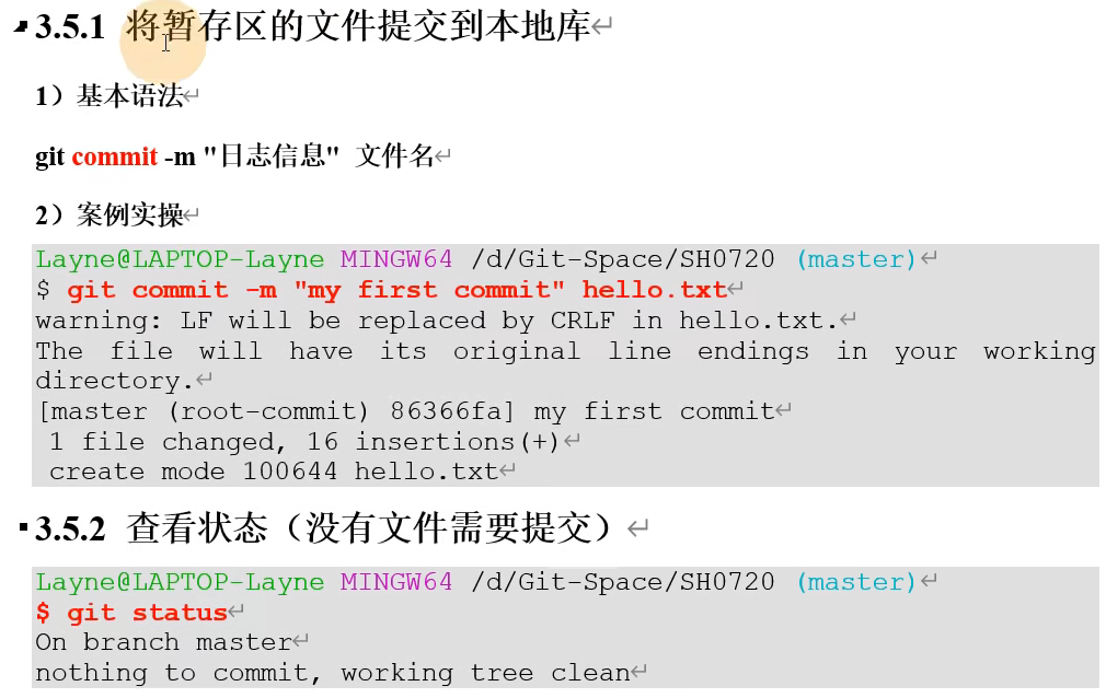 提交本地库,下面的git commit -m后的“日志信息”,实际是版本信息
