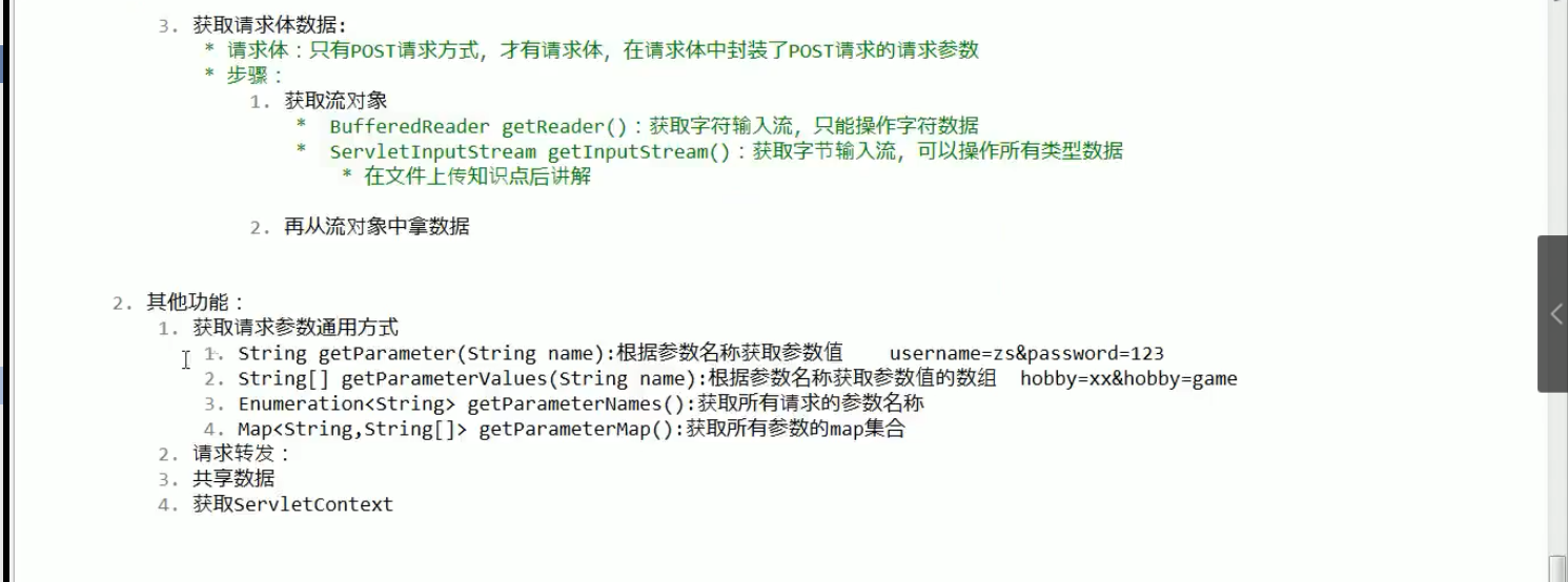 2. 流只能被读一次所以request.getParameter()、request.getInputStream()、request.getReader()这三种方法是有冲突的