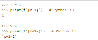 在 Python 3.8 的版本中可以使用 = 符号来拼接运算表达式与结果: