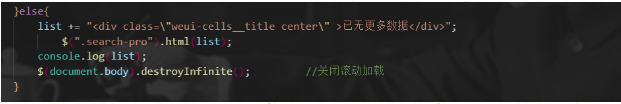 当然在你需要再次使用滚动加载的时候可以在需要的位置加入"$(document.body).infinite()"重新启动一下函数就好了。