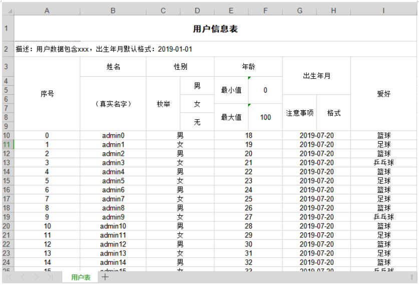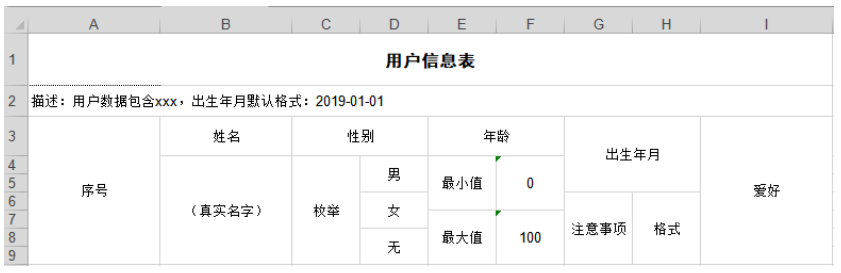<td colspan="9">描述:用户数据包含xxx,出生年月默认格式:2019-01-01</td>