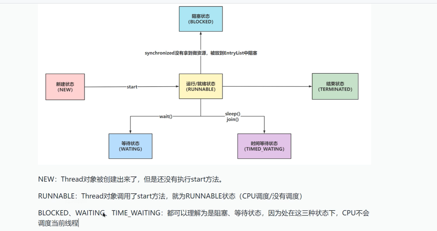 - 时间片轮转:每个线程分到固定时间片,用完后切换(抢占式调度)。