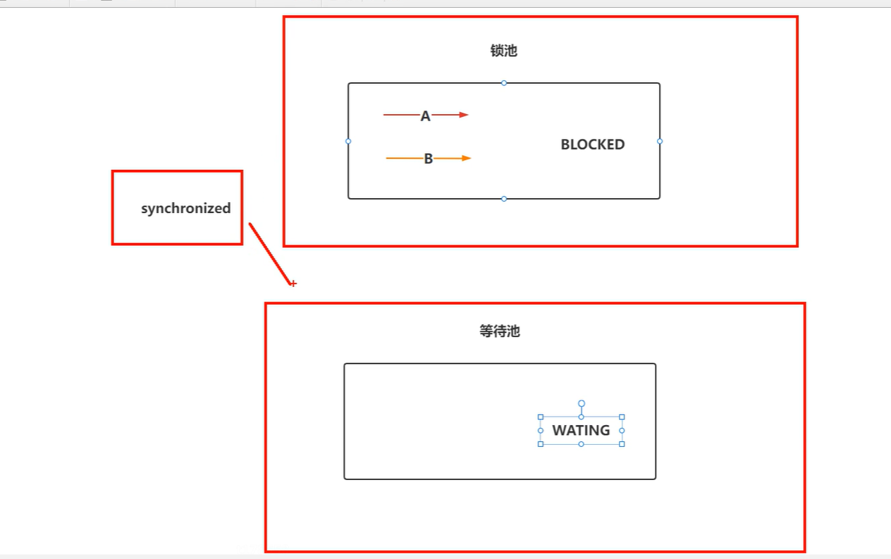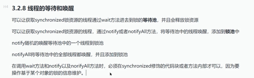 在这个关键字里面,如果调用了wait()方法,就会释放锁资源,放到等待池中,其它线程就可以竞争到这个锁。