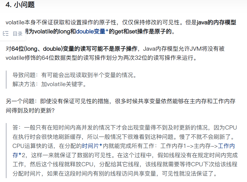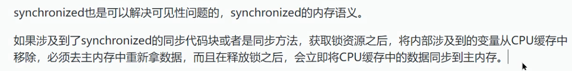 synchronized也可以解决线程可见性问题,因为拿到锁过后会清空cpu中涉及到内部变量的缓存,必须重新去主存中拿最新数据。