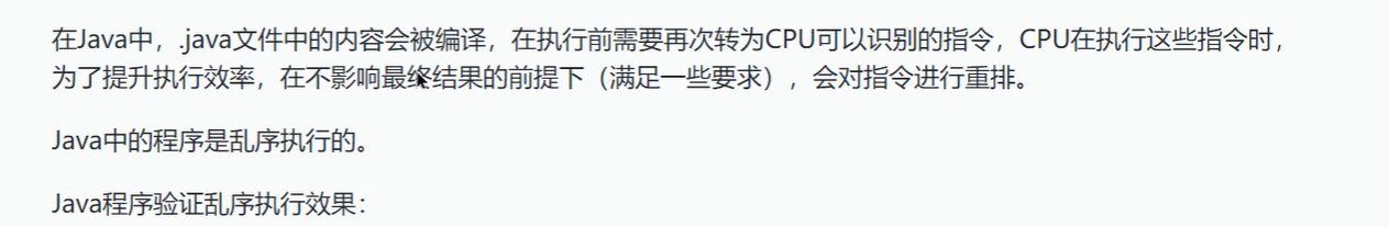 以分配对象为例:1、开辟空间 2、初始化 3、分配地址。这三步如果初始化放在最后,那么其它线程就有可能拿到一个空内容的对象,因为分配地址被提前了,这时还没初始化。