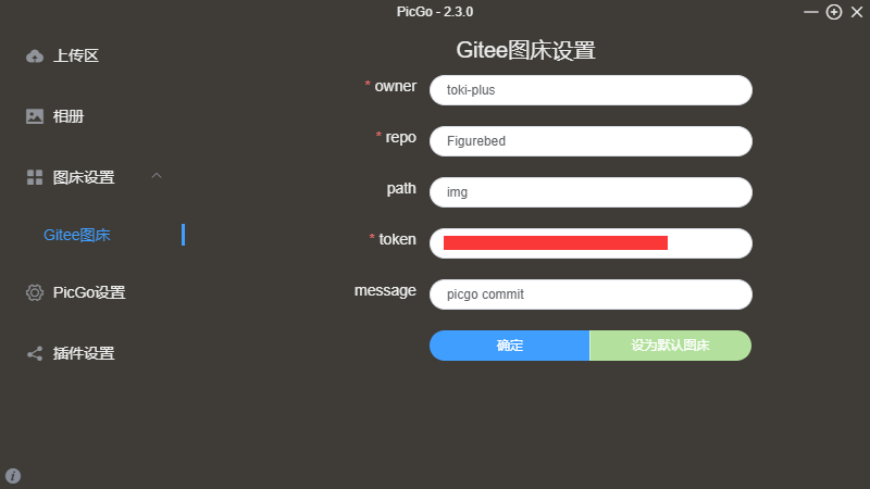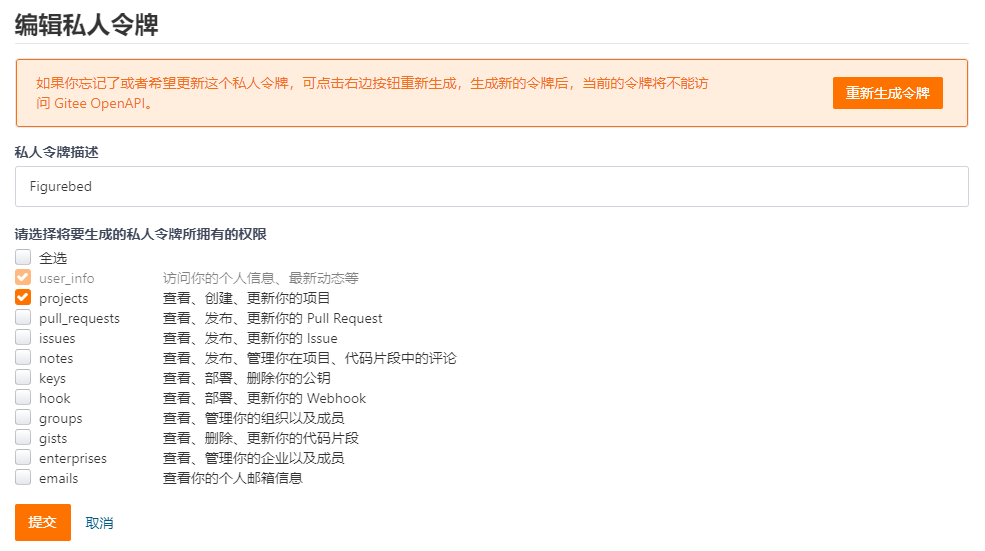 token:在 gitee 右上角头像中进入设置,再到设置页左边找到私人令牌,创建令牌即可获得