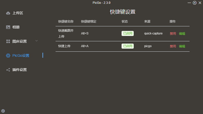 在 PicGo 设置中找到 修改快捷键 进行编辑