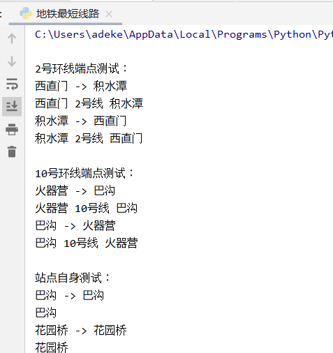 # findway("花园桥", "花园桥")