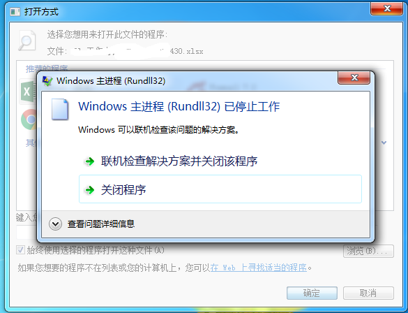 电脑有时被一些垃圾流氓软件更改了默认打开方式,卸载流氓软件后无法打开原文件,在设置文件与正确程序关联时(设置文件默认打开程序)提示windows 主进程(Rundll32)已经停止工作,只能退出,无法关联。