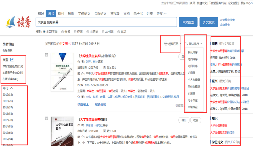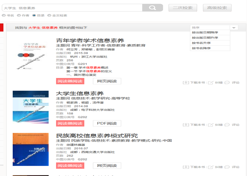 - 检索结果提供图书的本馆纸质馆藏和电子图书分布情况