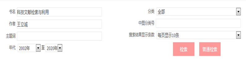 检索字段:书名、作者、主题词、出版社、ISBN、分类、中图分类号、年代
