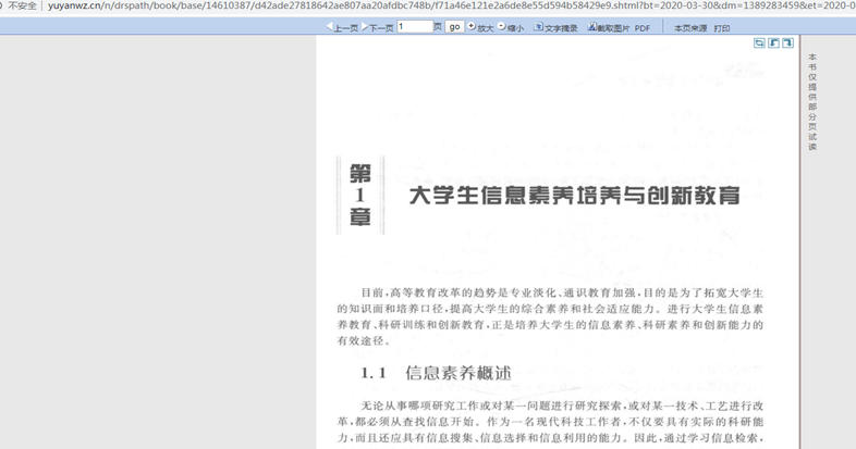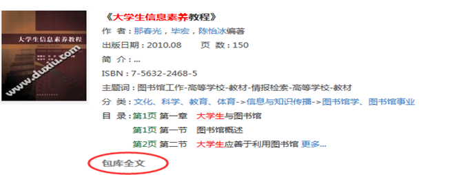 - 提供330余万种中文电子图书、10亿页全文资料、部分文献的原文试读,以及查找、获取各种类型学术文献资料的一站式检索。