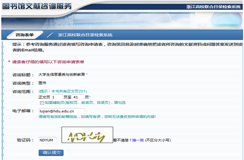 - 读者DIY填写需传递的图书信息、页码、email、验证码然后点确认提交,收到邮件回复后,按照提供的链接阅读图书(20天内有效)