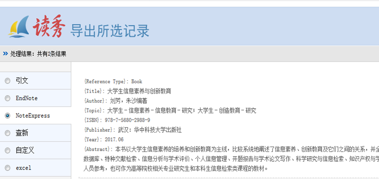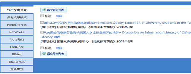 年份、学科、期刊级别、刊名、作者、机构 - 题录输出方式: