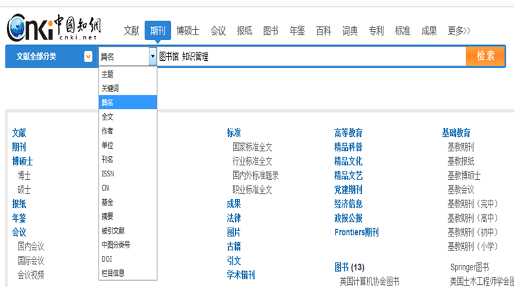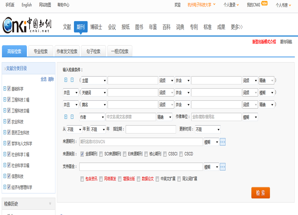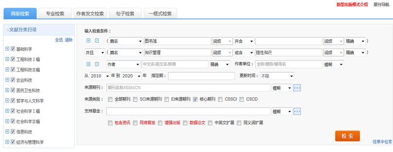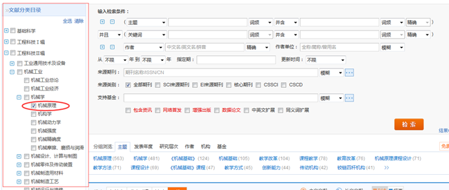 - 可与高级检索、专业检索结合使用,在指定学科类别中,输入检索词进行检索