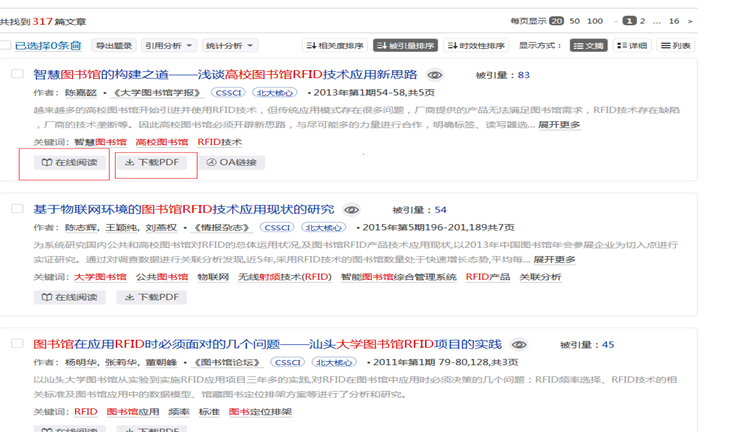 请用CNKI期刊数据库检索“无线射频识别技术在高校图书馆应用”方面的文献