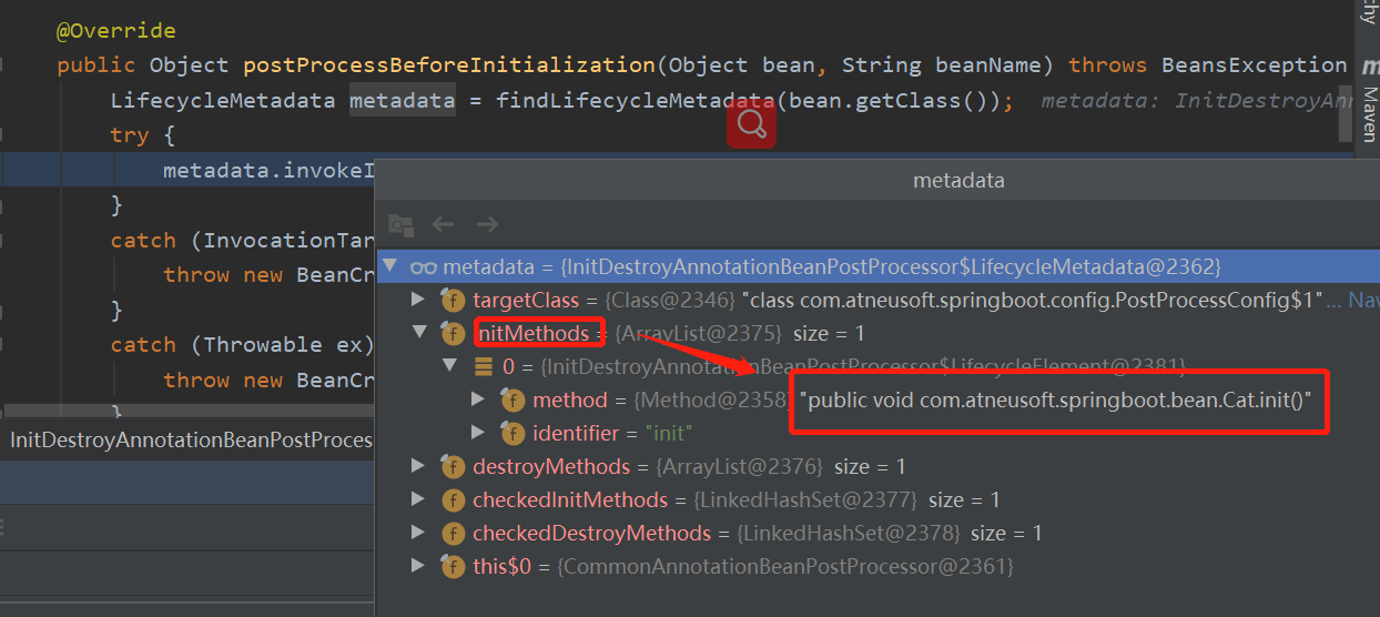 //找到当前bean的生命周期注解标注的方法 LifecycleMetadata metadata = findLifecycleMetadata(bean.getClass()); try {