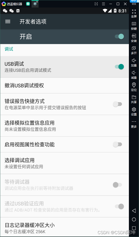返回上一级最底部会出现“开发者选项”点击进入,开启