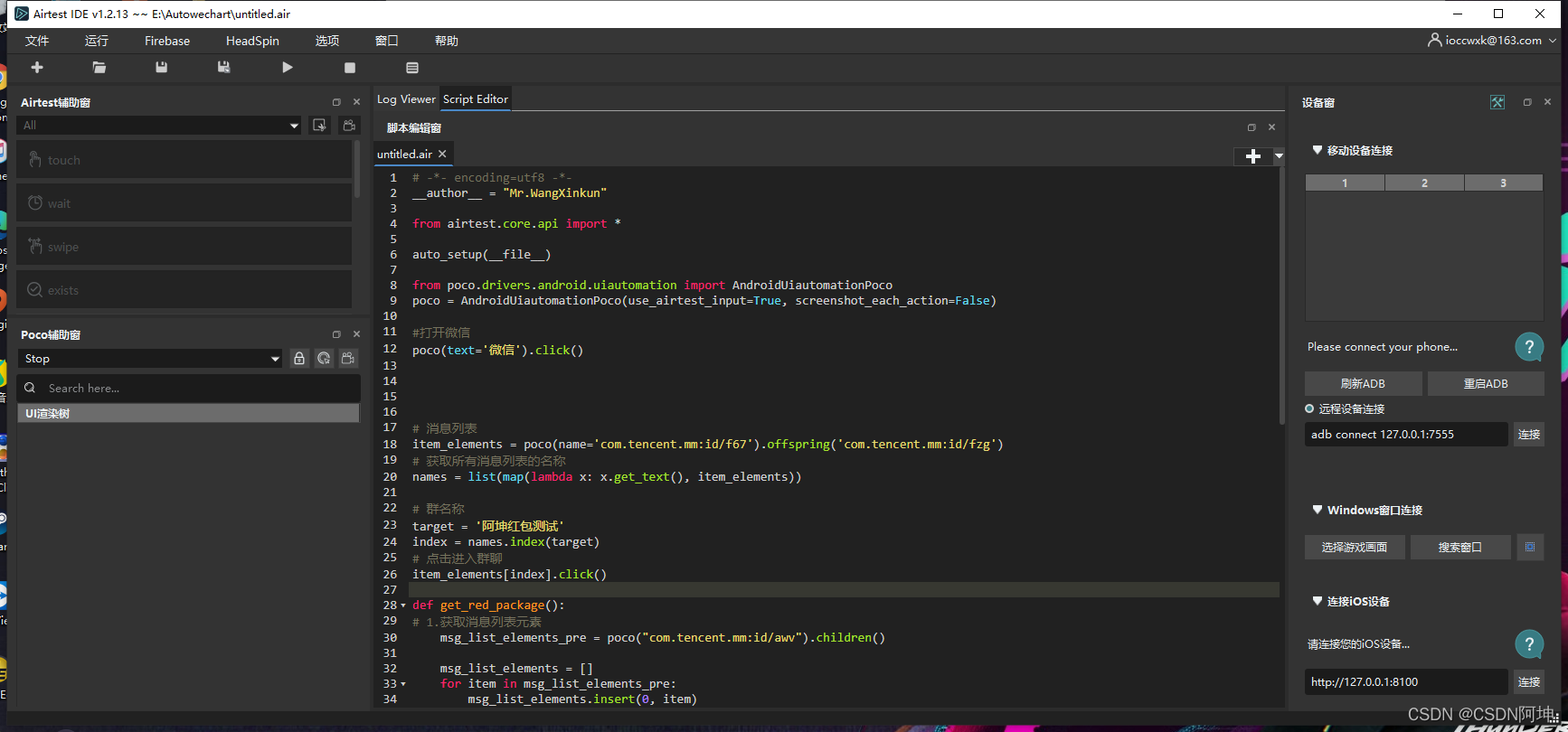 是一个配套推出的跨平台的UI自动化测试编辑器,内置了Airtest和Poco的相关插件功能,能够使用它快速简单地编写脚。