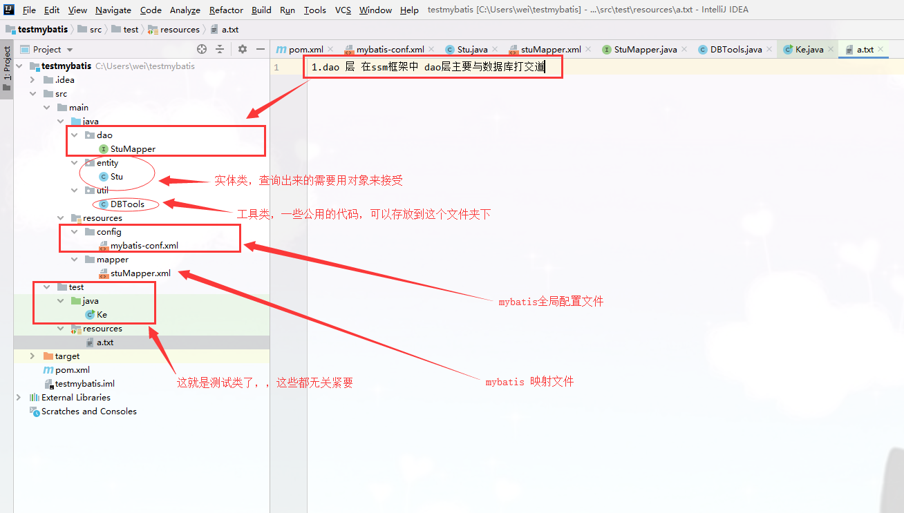 6.最后一个测试类,也就是调用到之前写的映射文件对应的接口