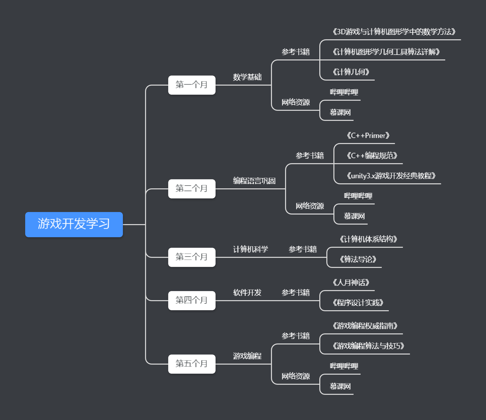游戏开发有许多的分支,可分为移动端和PC端,还可分为独立游戏和网络游戏,刚开始学习的时候先学习独立游戏的制作,因为涉及到网络的编程很麻烦。