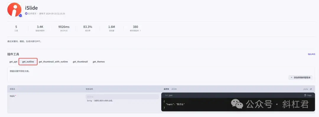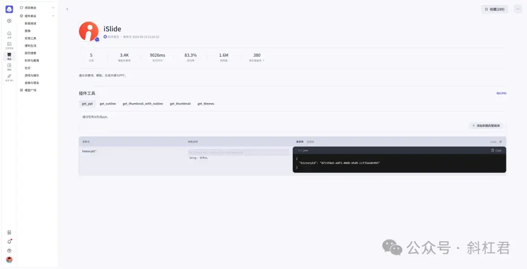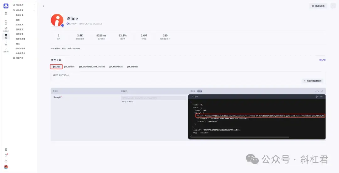 接下来是重点的环节,如果我们想生成PPT插件,只通过大模型是完成不了的,这里我们要借助PPT插件来完成。