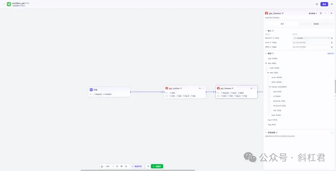 生成大纲以后,我们要选择一个模版,这里我们使用「get_themes」工具。
