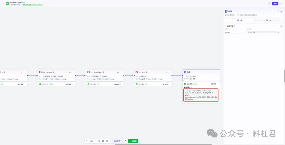 到这里PPT就生成完成了。本教程斜杠君使用最简单的方法教给了大家工作流生成PPT的原理。