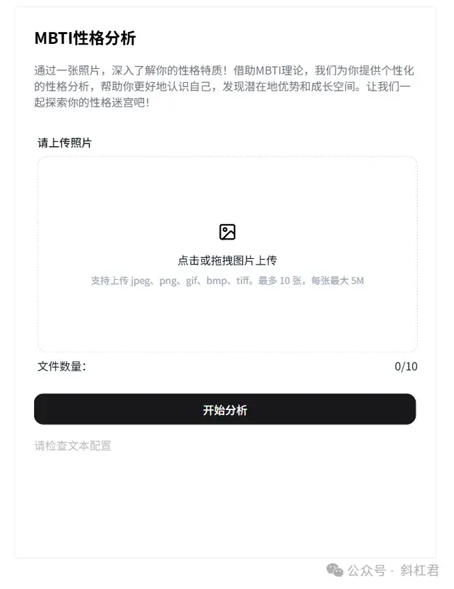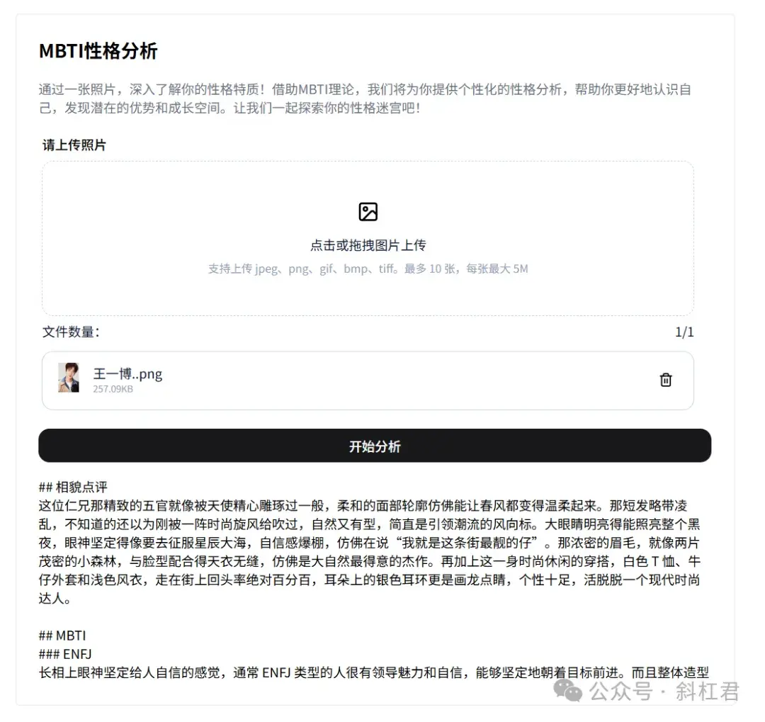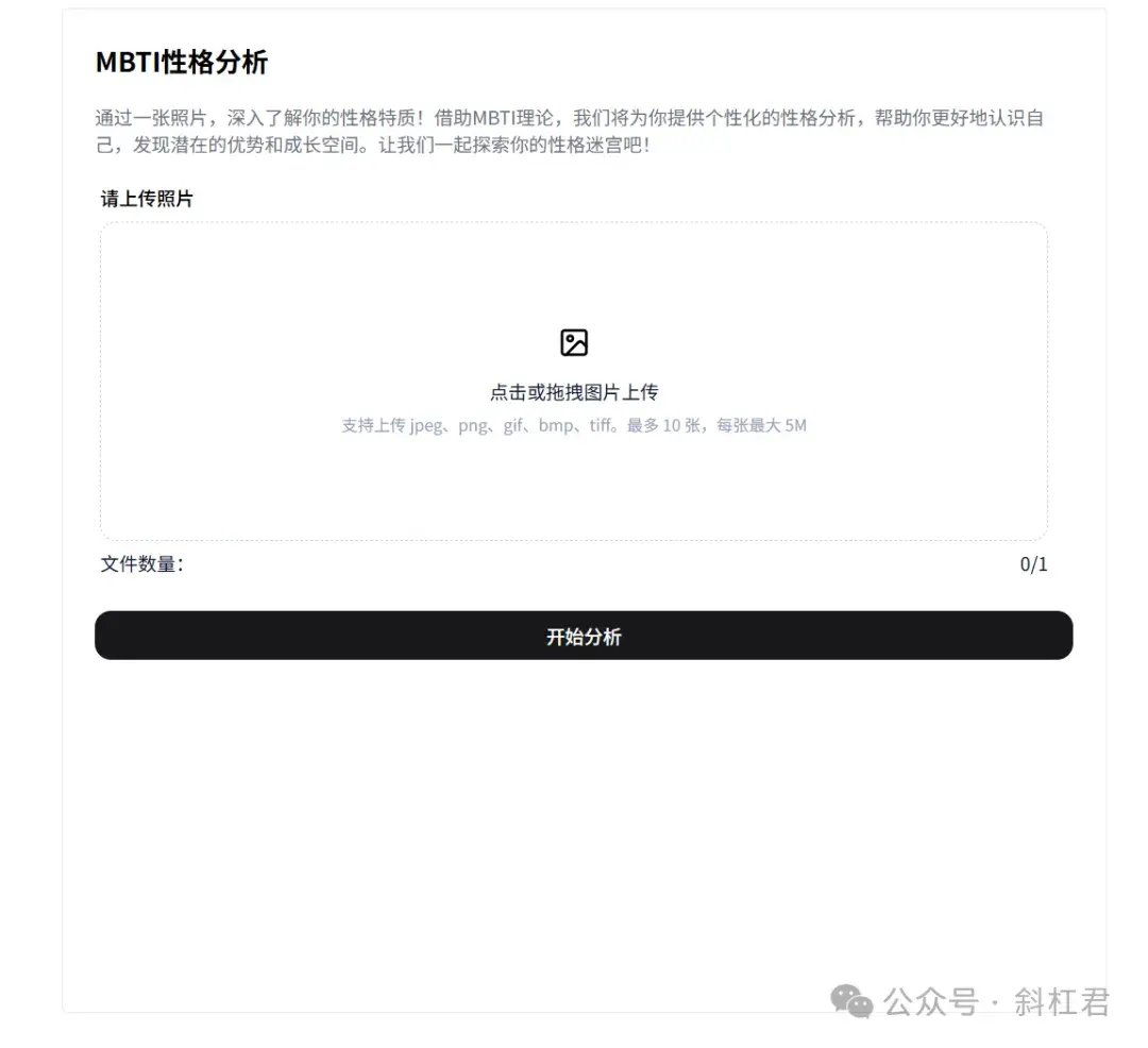 应用目标:上传一张照片,通过照片提供个性化的性格分析,帮助你更好地认识自己,发现潜在的优势和成长空间!