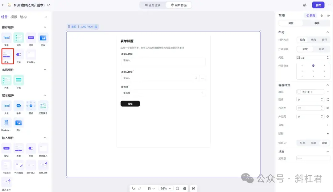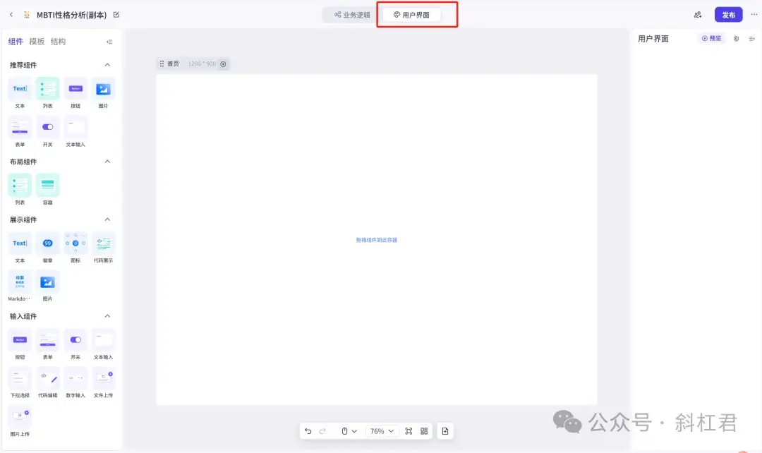 1、设计用户界面点击「用户界面」选项卡,就可以开始设计用户界面了。