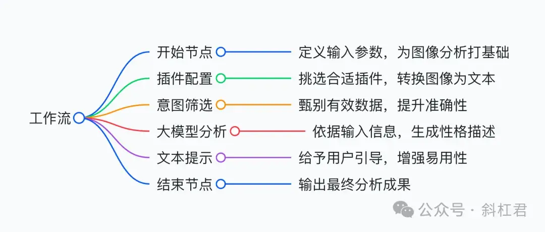 工作流是整个流程中相对复杂一些的部分,在这里斜杠君有一个心得:在创建工作流之前构思一下需要用到的工具以及他们的先后顺序,必要的话可以画一个思维导图,这样在后面搭建的过程中可以更加“心中有数”,以本次我们要搭建的应用为例: