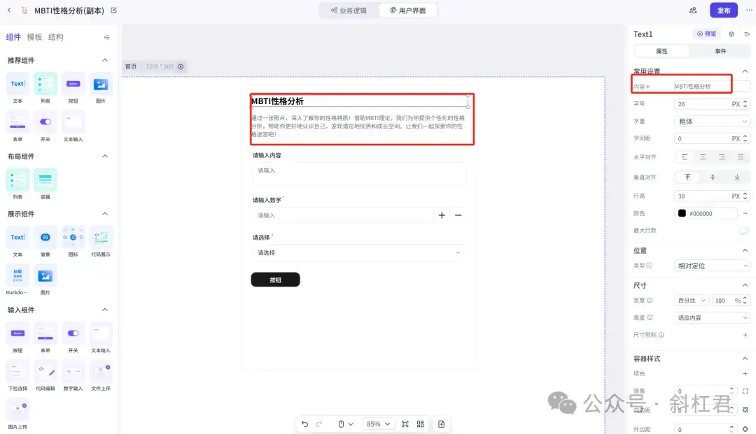 ️ 公众号原文:最新扣子(Coze)实战案例:这么火的MBTI应用还不快学习,MBTI人格分析测试扣子应用搭建教程,手把手教学,完全免费教程