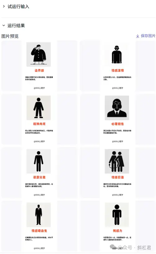 星球群里有同学是小红书做心理学内容的博主,每天手动制作图文要花费很多的时间。咨询是否可以通过工作流的方式批量生成心理学的知识图文?