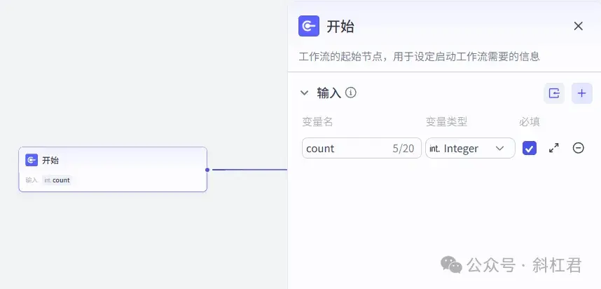 开始节点用来接收图文生成的数量。