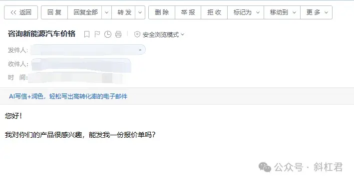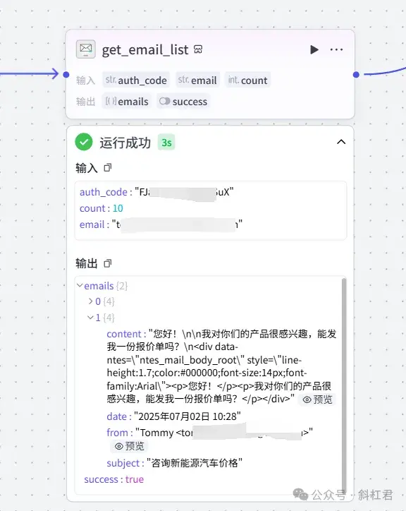 针对这个需求,斜杠君今天就带大家搭建一套流程。无需代码,只需简单三步,就能搭建一个可以自动分析并回复邮件的AI工作流,把重复劳动交给AI。