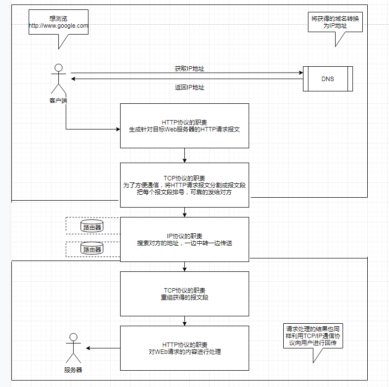 用HTTP举例说明,首先作为发送端的客户端在应用层(HTTP协议)发出一个请求。