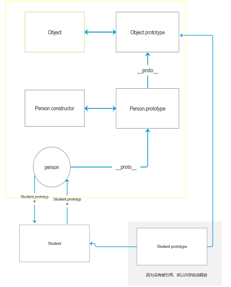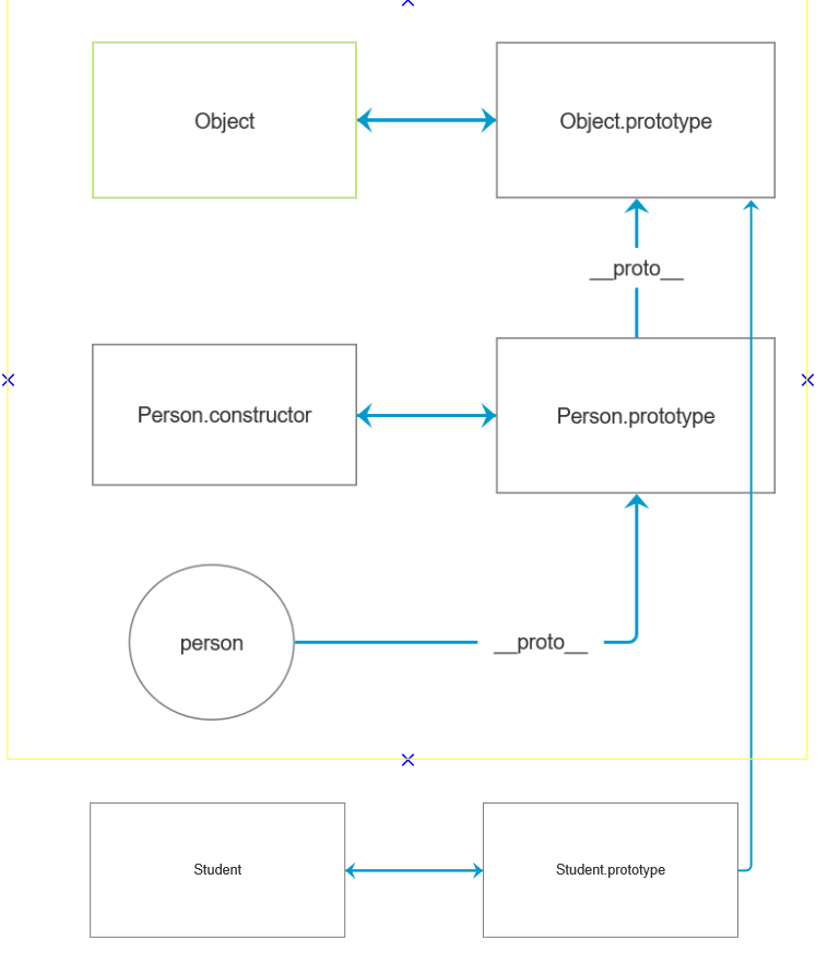 因此,可以让 Student 的原型指向 Person 的一个实例,