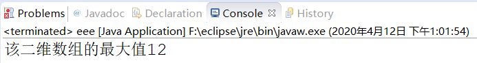 1 public static void main(String[] args) { 2 int arr[][] = { { 1, 2, 3 }, { 4, 5, 6 }, { 7, 8, 9 }, { 10, 11, 12 } }; 3 int max = arr[0][0]; 4 for (int i = 0; i < arr.length; i++) { 5 for (int j = 0; j < arr[i].length; j++) { 6 if (arr[i][j] > max) { 7 max = arr[i][j]; 8 } 9 } 10 } 11 System.out.println("该二维数组的最大值"+max); 12 }
